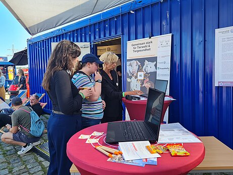 Dr. Sandra Düpjan war mit einem interaktiven Beitrag: „Ich glaub’, mein Schwein pfeift!“ für unseren Verbund vertreten und hat die Besucher:innen dafür in die Schweinesprachschule geschickt.